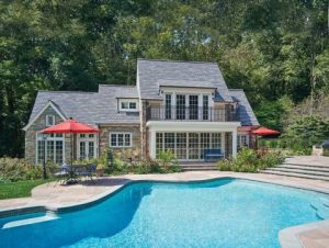 In Long Valley, NJ a pool house design reflects the style of the main house. When working on a home of distinguished provenance, additions and